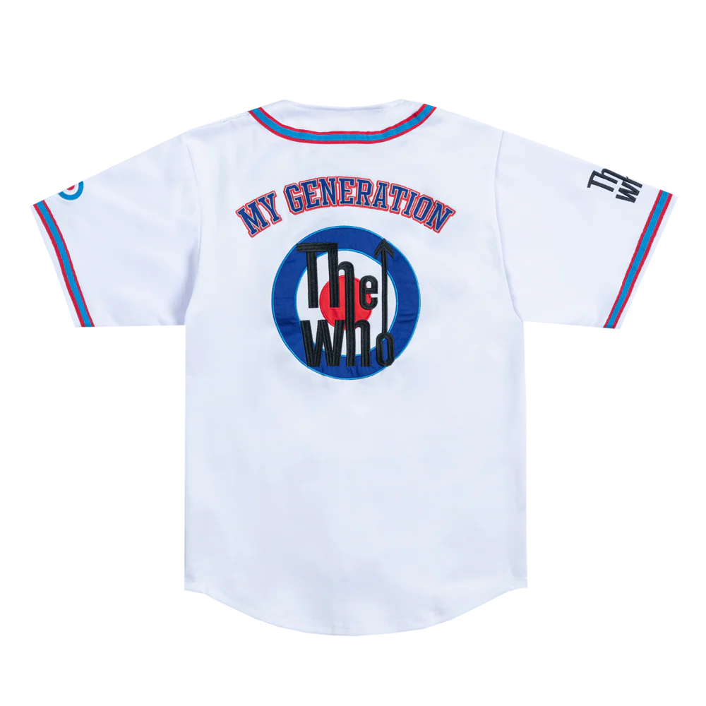 Generations collide as the 1960's meet the 1990's and the uniform of America's pastime gets the full Mod treatment. Varsity style typography plus the iconic target make this white button up baseball shirt a homerun waiting to happen.